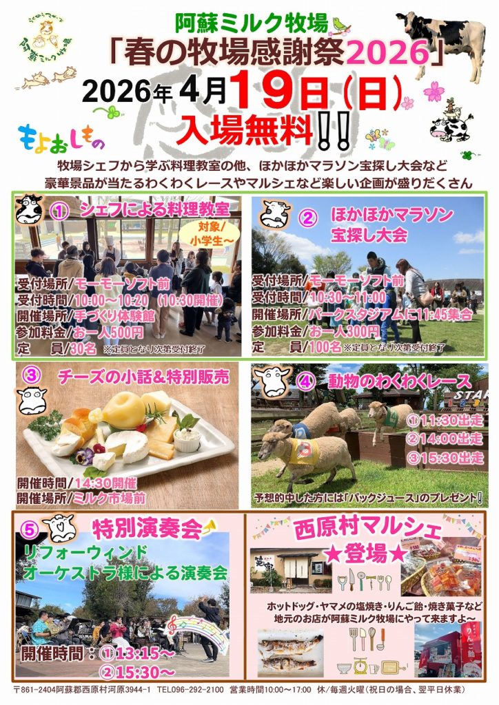 2026.04.08イベント2026年4月19日(日)『春の牧場感謝祭』開催 2026年4月19日(日)『春の牧場感謝祭』を開催します★当日は入場無料の他、イベントも盛りだくさんです!みなさまのお越しをお待ちしております♪ 前の記事 記事一覧 次の記事